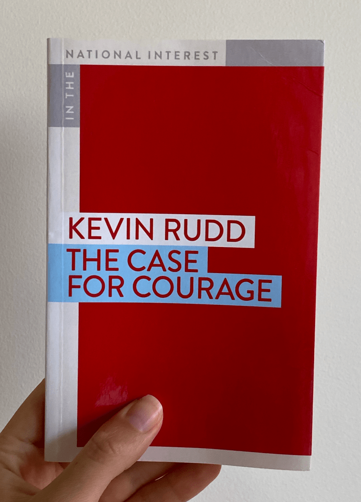 Perhaps this lack of understanding and guidance in childhood allowed for me to see all sides, explore more about who’s backing who and why. The most recent discovery in this way is K. Rudd’s ‘The Case for Courage’. I’ve most enjoyed his straightforward intel on what the likes of Murdoch and Morrison are up to, along with the challenges we face in measures of global security, climate leadership, and the future of pandemics.