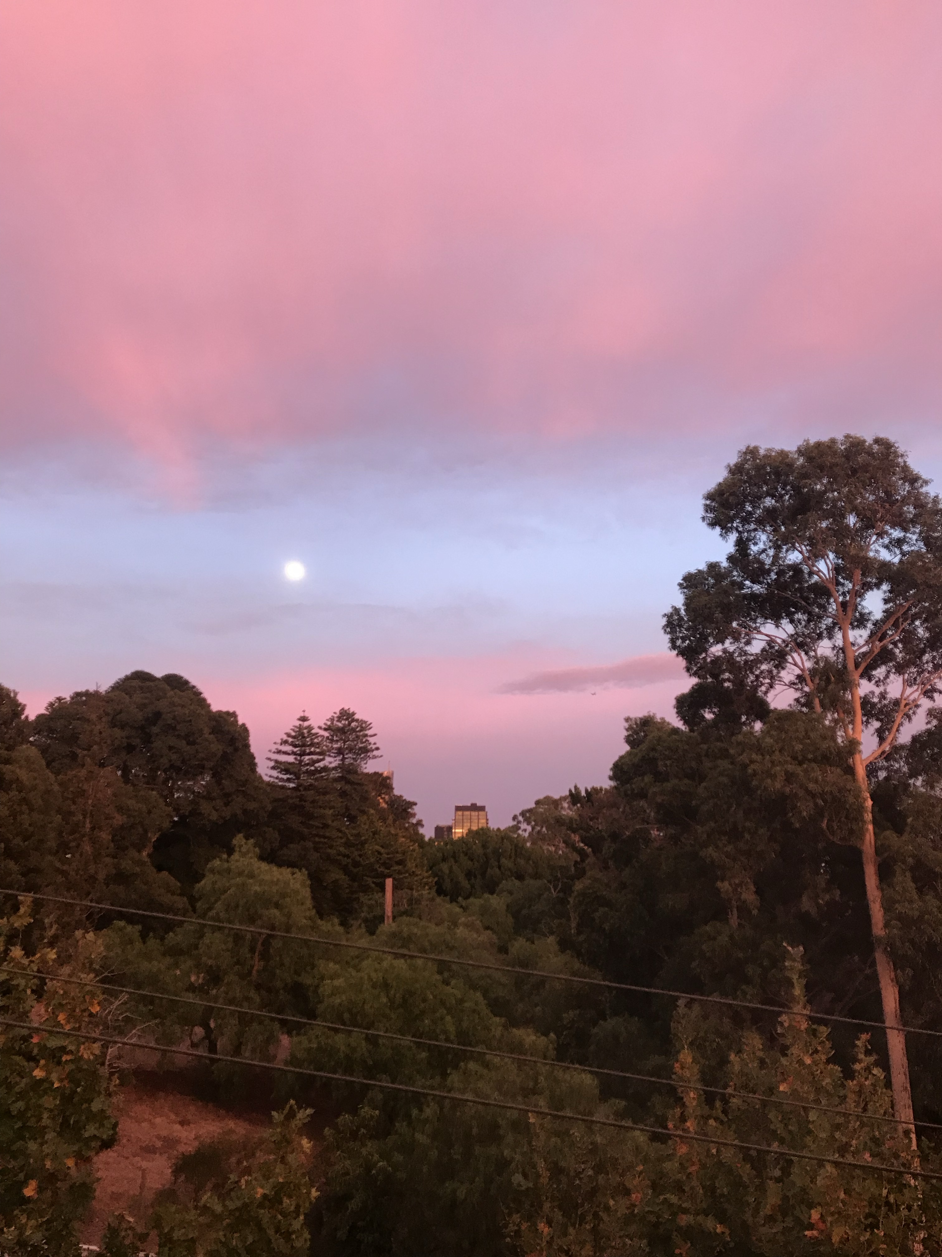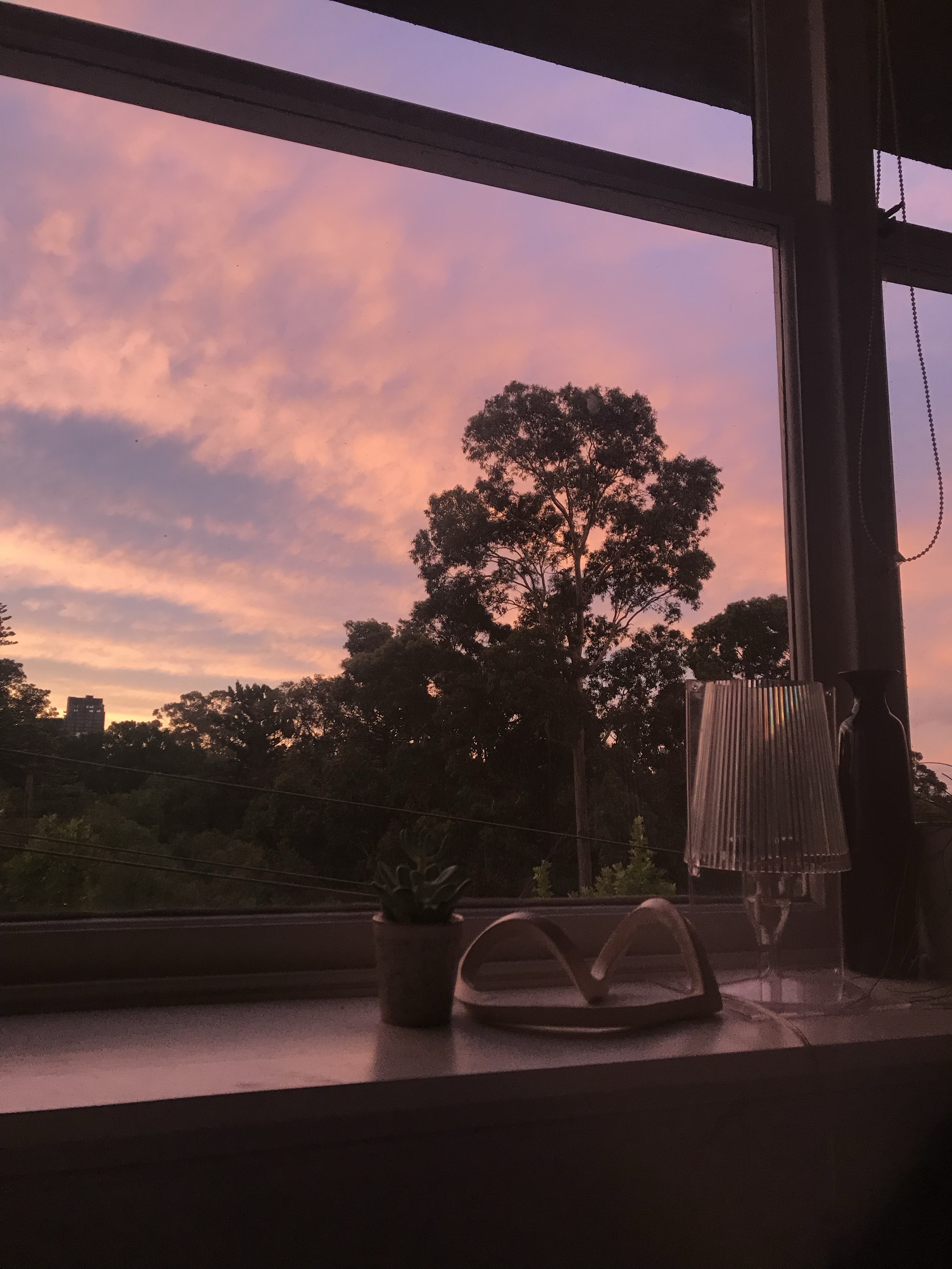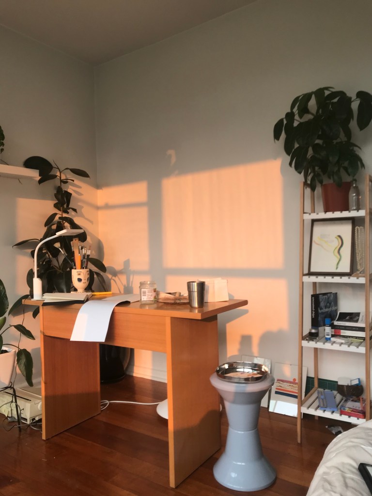 Pink for dawn, dusk and roses in the afternoon.A 50s built third-floor apartment drenched in idealistic sun. Unit 21, the solace of solitude spent at attention. Deep peace paired with paints…Poetry…Pastels…Pencils…What decadence, to relish the touch of home, before it folds upon forever.