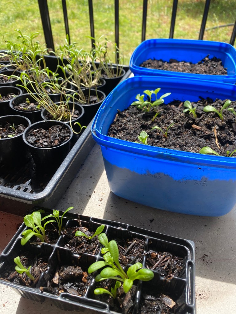 Whilst keeping an eager eye out for the cheeky Pied Currawong that lurks nearby, with his interest in ducklings, we’ve been busy in the garden. My most prized achievement has been growing flowers from seed; Cosmos, echinacea, sweet pea and dahlias. Although they’re still tiny, they’re making good progress.